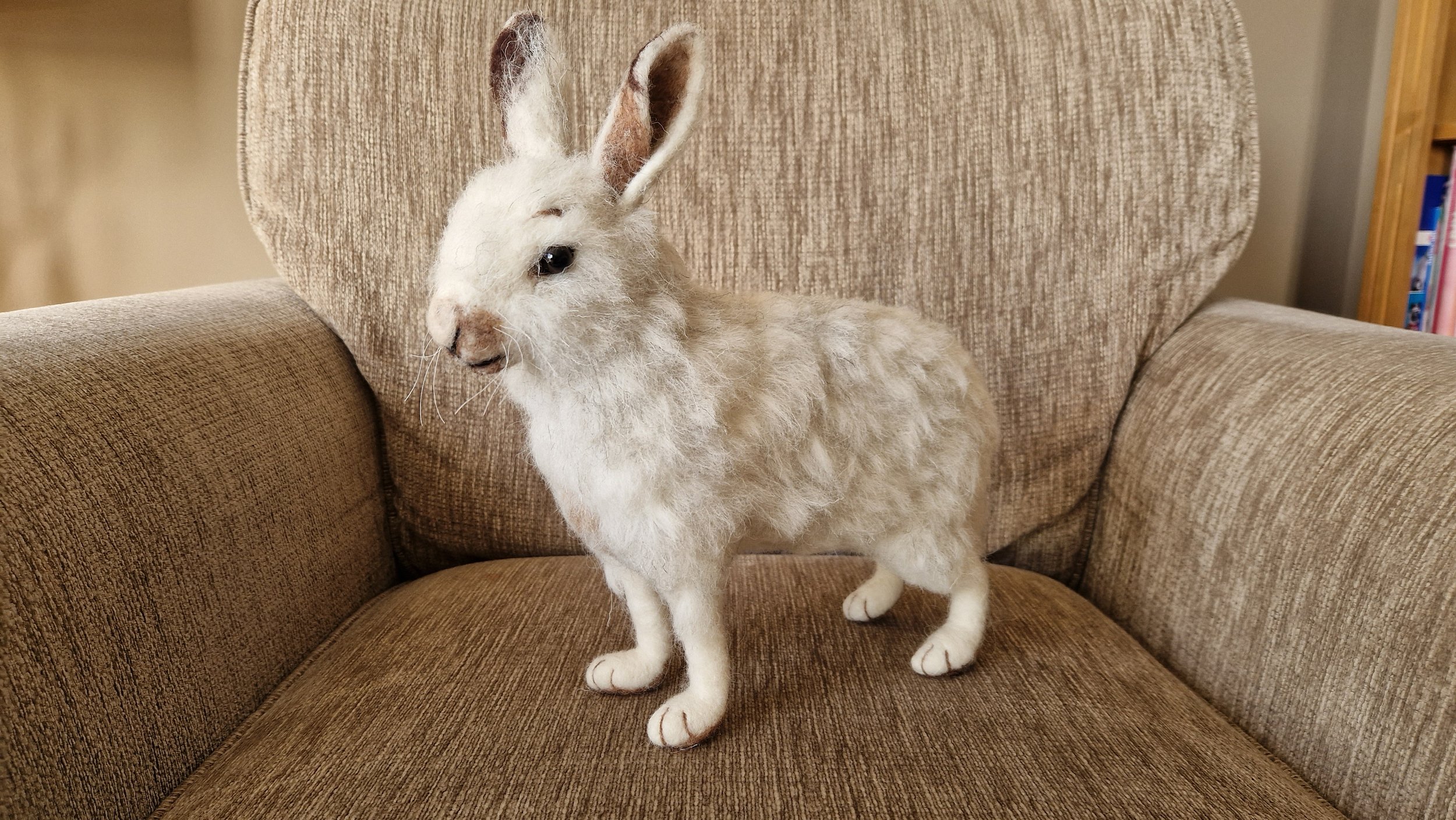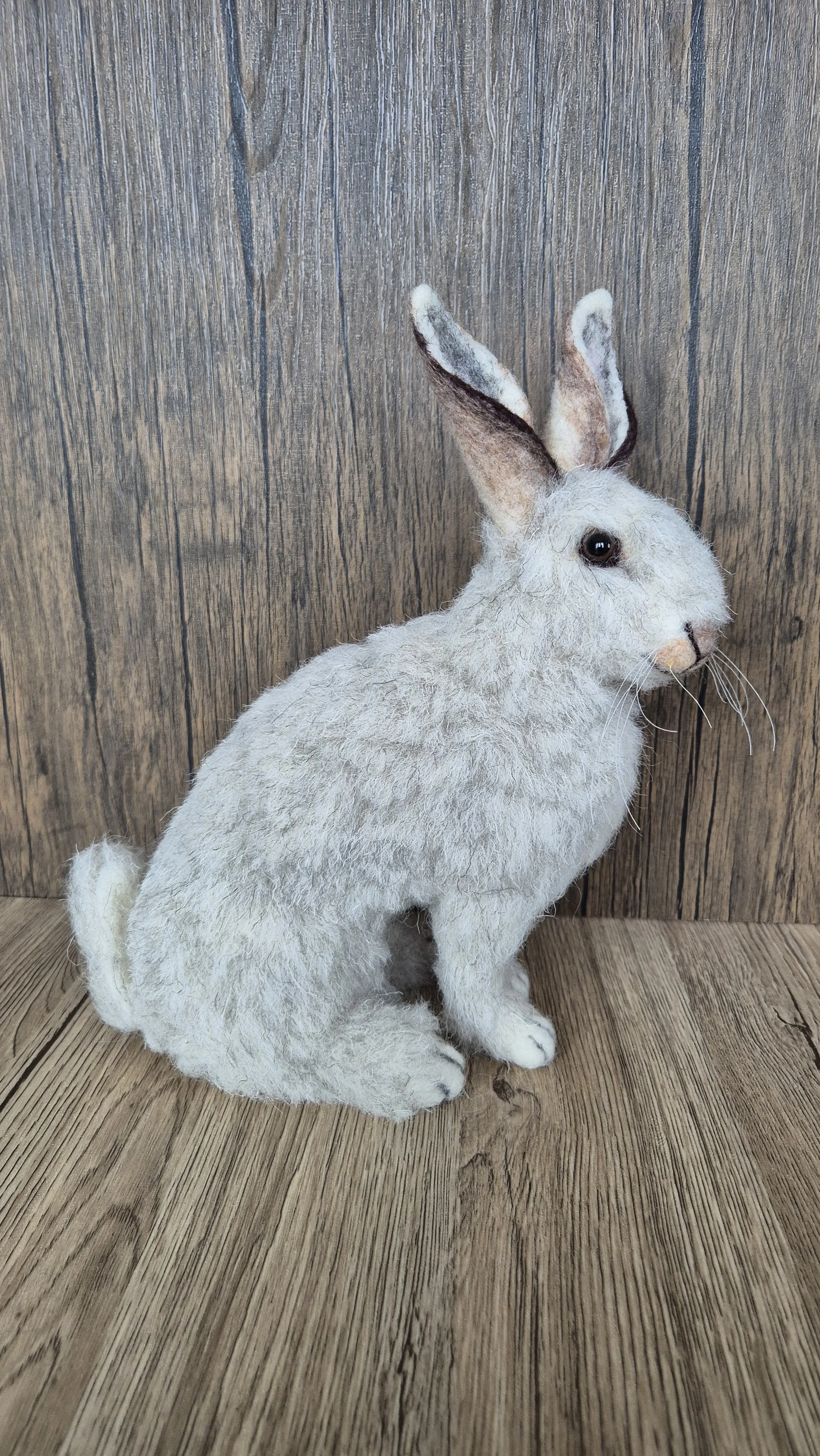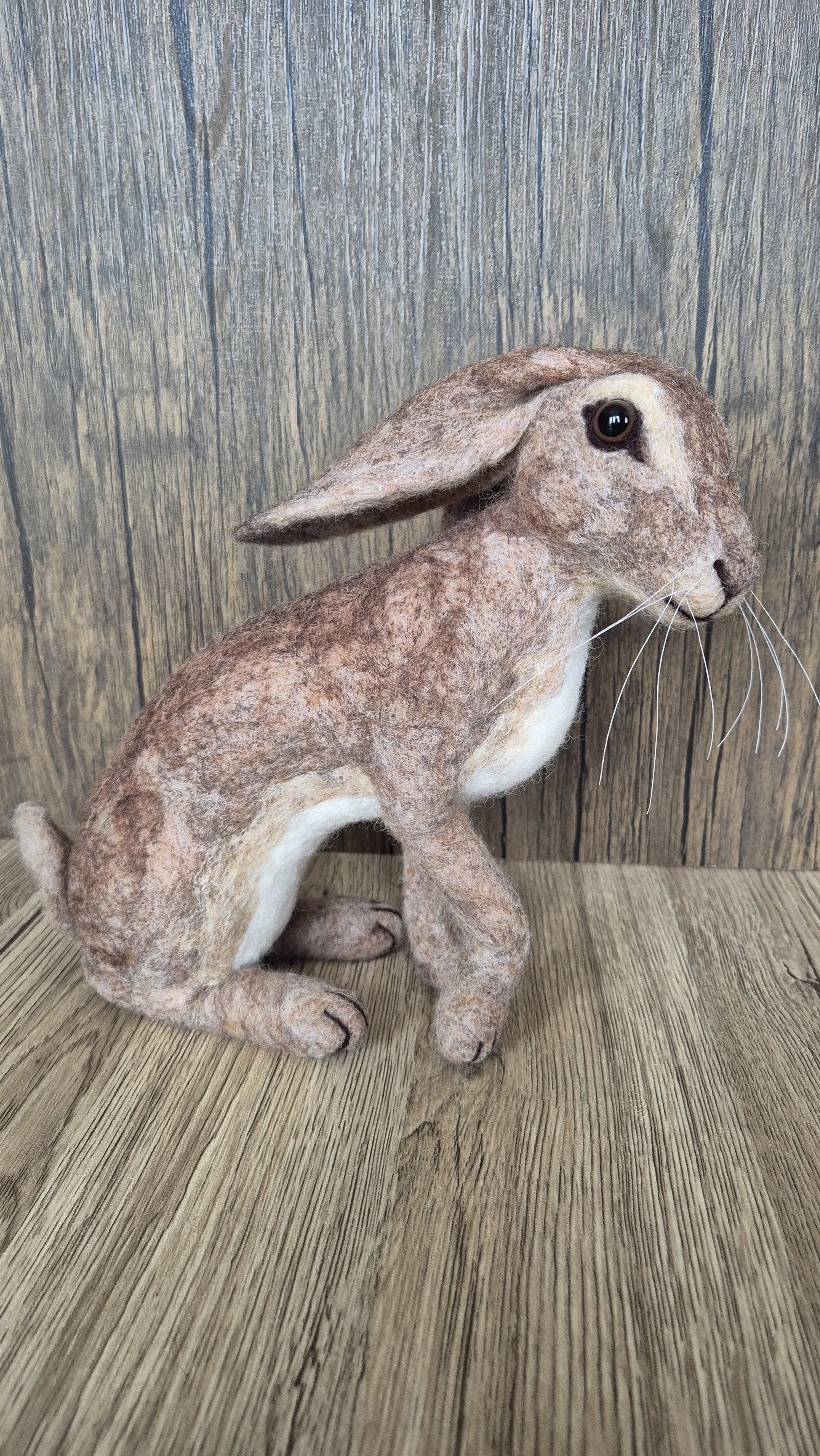 The hare we will be creating is about 6 to 8 inches high and ears on top and he/she will be in a sitting position with long fur. I have included some examples of my hares and it will be a combination of these styles. I plan to start creating it next month if you would like to see the finished creation before attending.